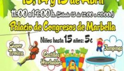 Gran Fiesta Infantil de la Primavera, los días 13 y 14 de abril (de 11.00 a 19.00 horas) y el 15 de abril de 2017 (de 12.00 a 20.00 horas), en la Sala de Exposiciones del Palacio de Congresos de Marbella. Niños hasta 15 años: 5 euros Super Tirolina, Castillos Hinchables,...