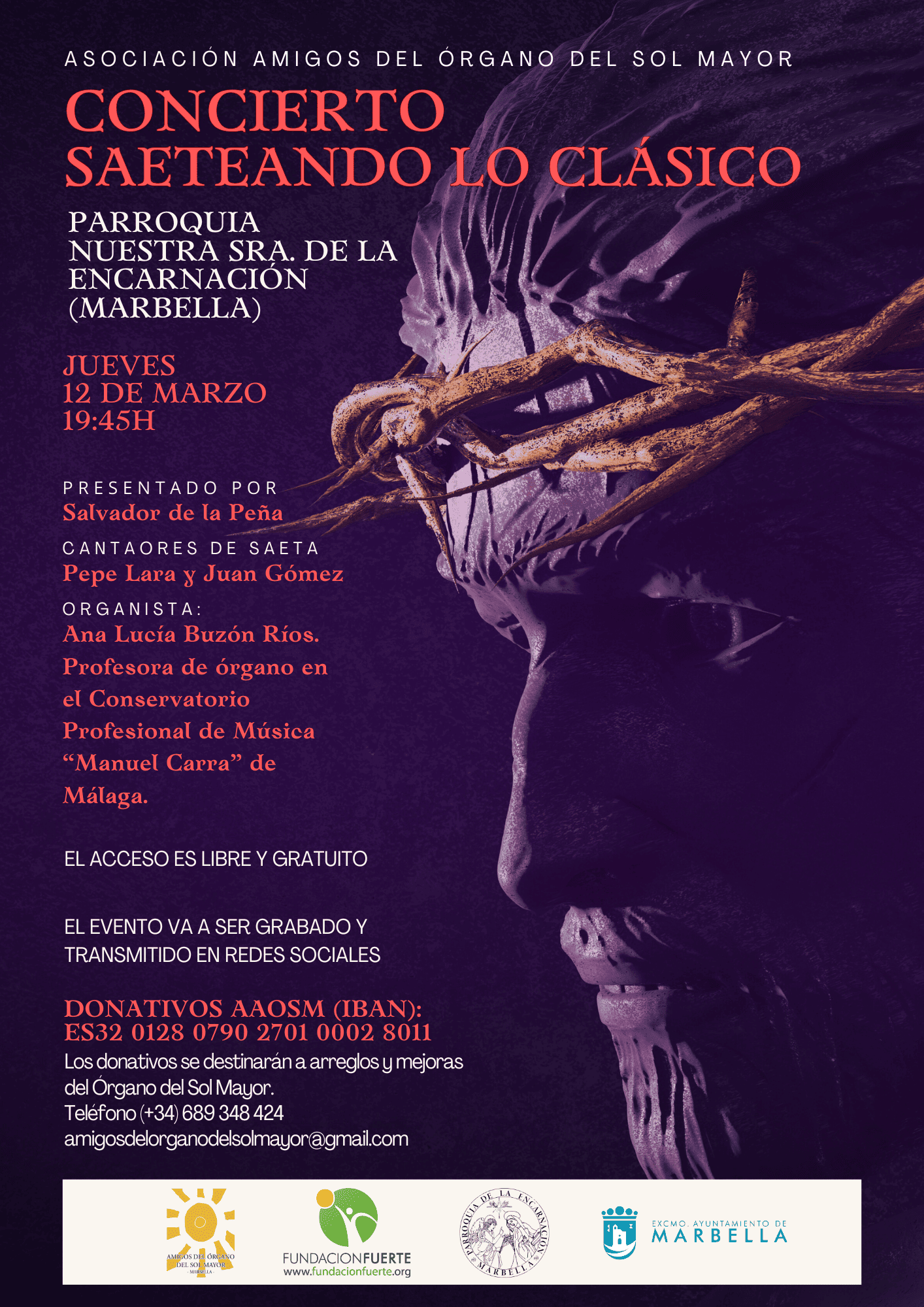 Este concierto está organizado por Fundación Fuerte en colaboración con el Ayuntamiento de Marbella, reafirmando su compromiso con la promoción del patrimonio musical y el apoyo a iniciativas culturales de gran valor artístico.