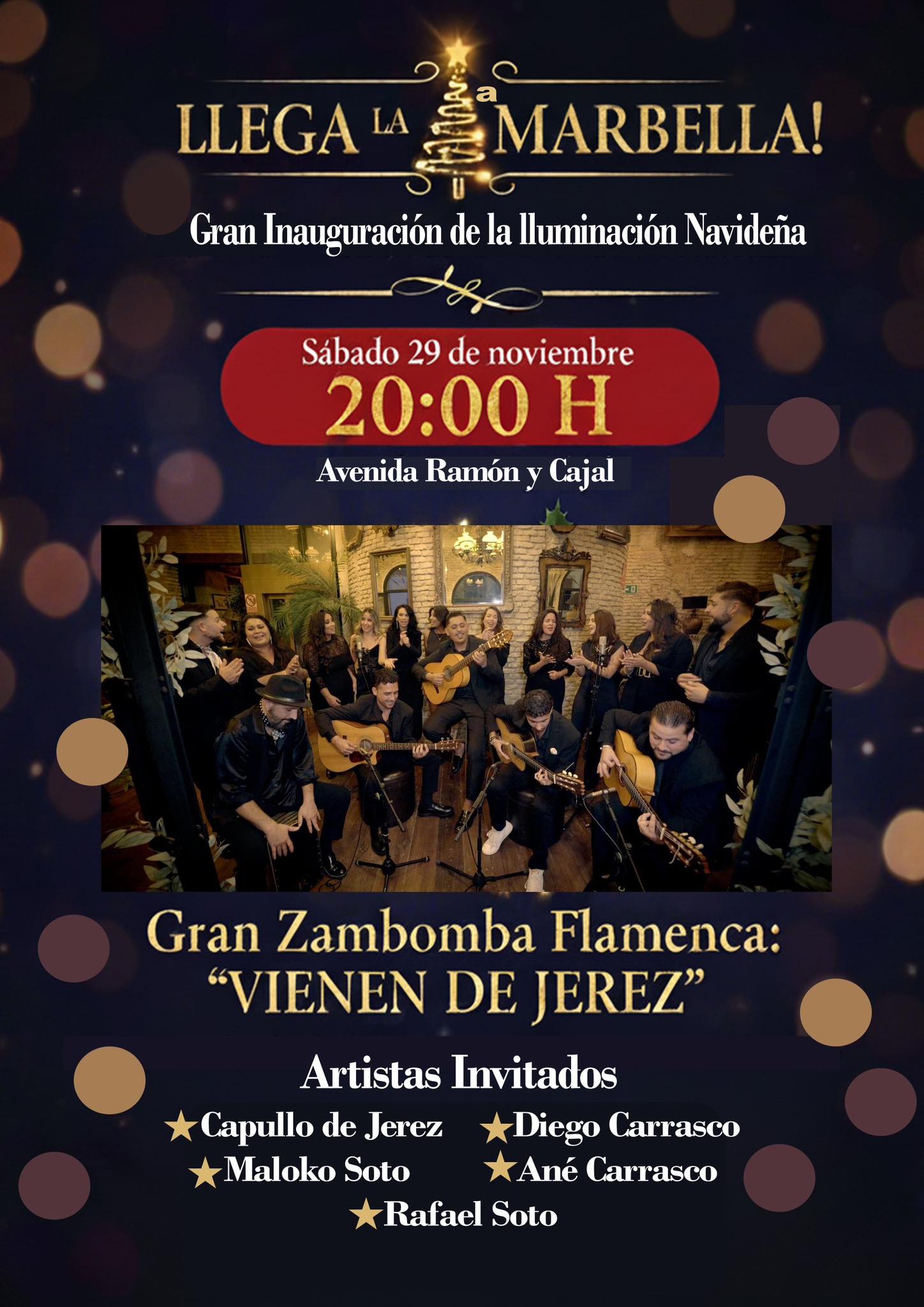 Tras el encendido, la noche continuará con el gran espectáculo “Vienen de Jerez”, con un elenco de lujo: