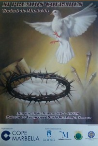 11º PREMIOS COFRADES CIUDAD DE MARBELLA se celebrarán el martes 28 de marzo de 2017, a las 19.00 horas, en el Auditórium del Palacio de Congresos de Marbella, organizados por COPE Marbella, cuentan con la colaboración del Excelentísimo Ayuntamiento de Marbella y la Diputación Provincial de Málaga